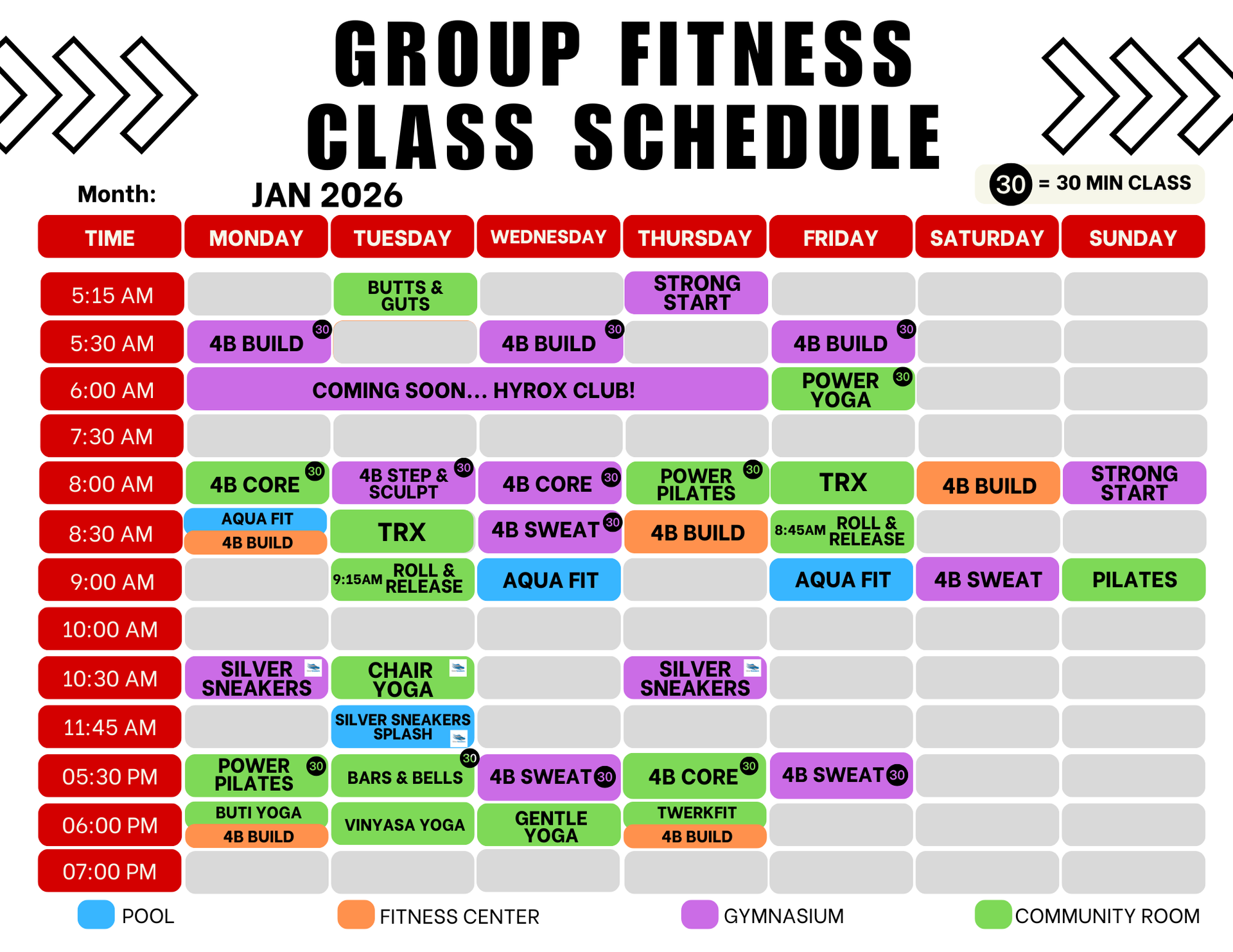 January Class Schedule