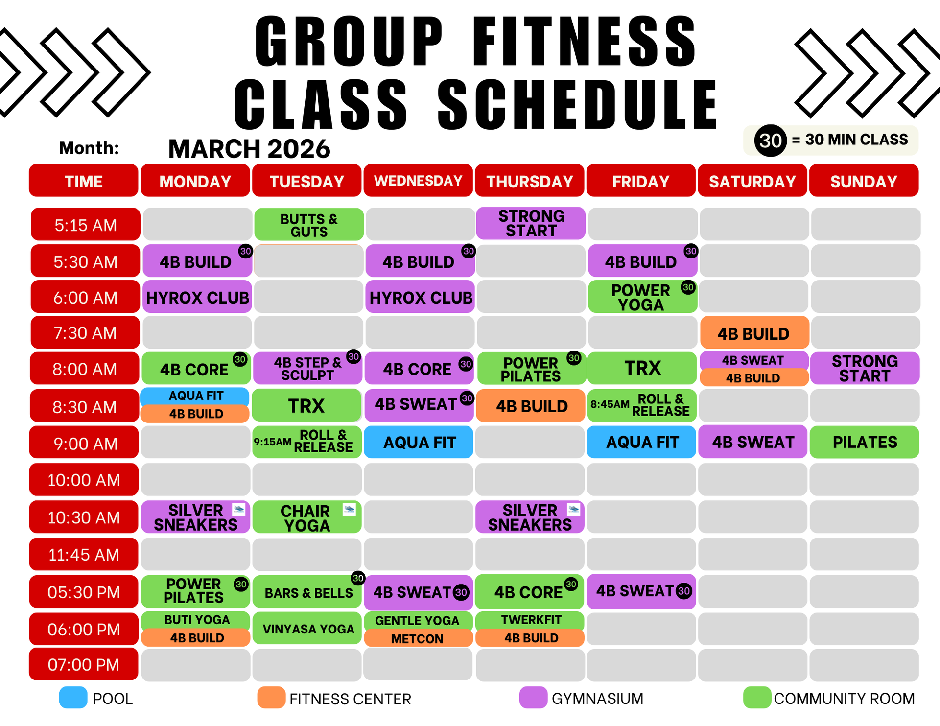 4B Build is a dynamic and results-driven fitness class designed to help you build strength, increase muscle mass, and elevate your overall physical performance. This class combines traditional strength training exercises with modern techniques to challenge your body and push you to new heights of strength and power. Join 4BFC instructors in the Fitness Center and learn how to make the most out of your hour in the gym.